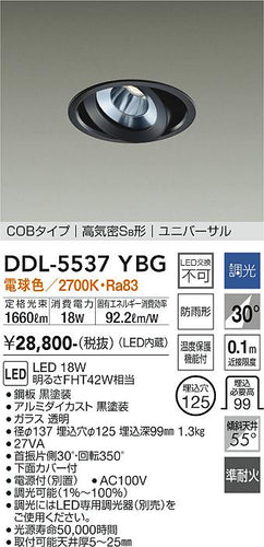 安心のメーカー保証【インボイス対応店】DDL5537YBG 大光電機 LED COBタイプ ダウンライト DAIKO(ダイコー) 即日発送 当日発送 在庫確認