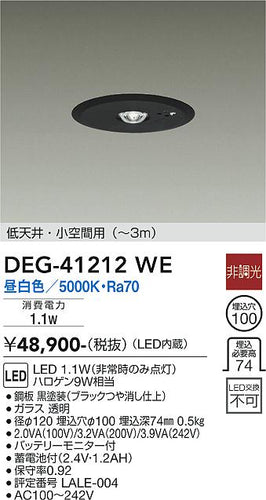 安心のメーカー保証【インボイス対応店】DEG41212WE 大光電機 LED ダウンライト 非常灯 DAIKO(ダイコー) 即日発送 当日発送 在庫確認